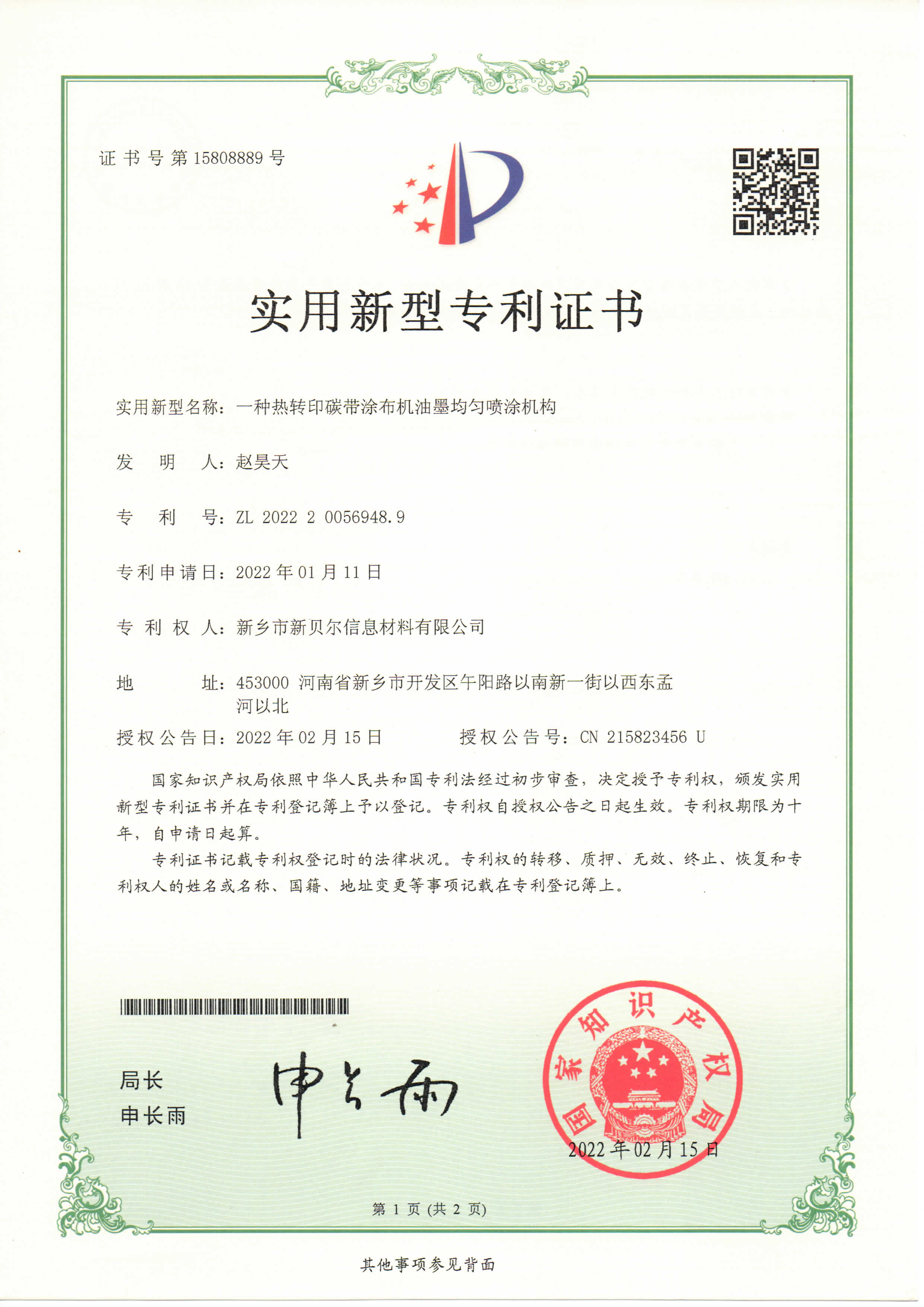 公司生產(chǎn)的高適應(yīng)性打碼色帶被河南省科技廳認(rèn)定為高新技術(shù)產(chǎn)品
